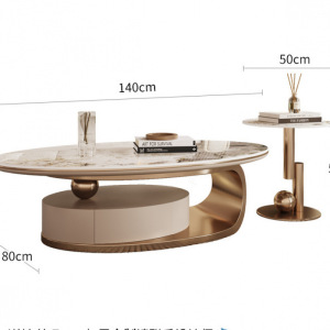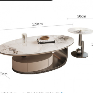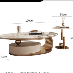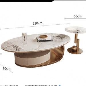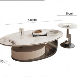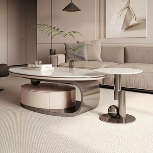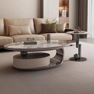 岩板轻奢茶几现代极简家用储物意式 客厅设计师椭圆形茶几桌新款