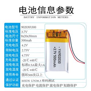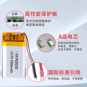 902030锂电池 500mah美容仪电子体重称手持风扇3.7V充电电池