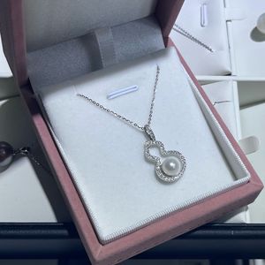 S925银葫芦吊坠项链无核淡水珍珠7-8MM正圆强光颈饰百搭精致