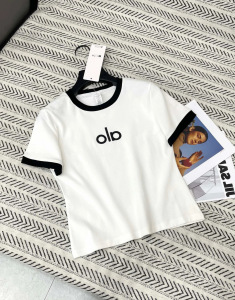 alo字母印花新款夏季撞色短袖INS风logo正肩修身显瘦百搭T恤