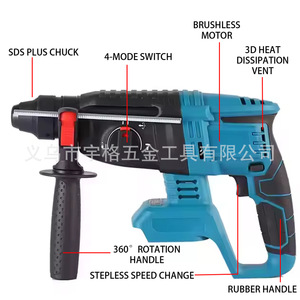 ブラシレスリチウム電動ピック 26型電動ハンマー 充電式ハイパワーインパクトドリル ワイヤレスハンマー 3機能電動工具