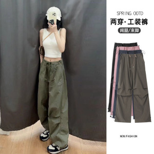 ミリタリーグリーン登山オーバーオール女性の 2025 新しい夏アメリカンアウトドアスポーツパンツ春と秋のハイウエストストレートワイドレッグパンツ
