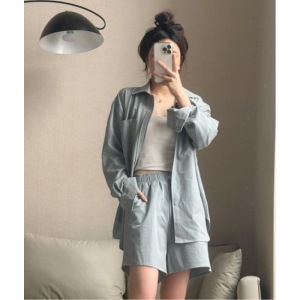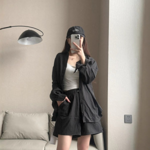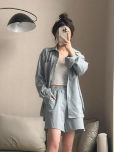 alo25早春新款时尚休闲衬衫短裤套装百搭显瘦法式优雅慵懒风简约
