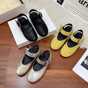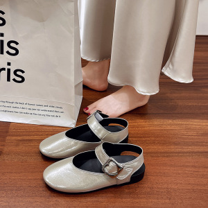 フレンチメリージェーンシューズ女性用 2025 春と秋の新作ラウンドトゥソフトソールスリッポン浅い口厚底ビーニーシューズ