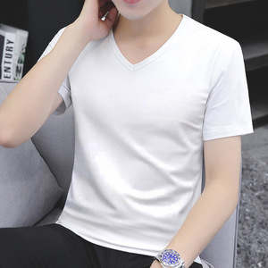 メンズ半袖Tシャツメンズ夏新作ハートネック無地VネックスリムインナーレイヤリングシャツTシャツトップ