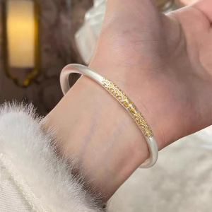 新しい中国風の緑豊かな葉と金の閉じた巻き唐草模様のブレスレット、女性用、古代スタイルの絶妙なつや消しブレスレット、若いスタイル