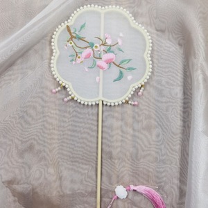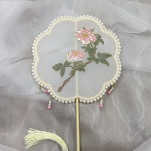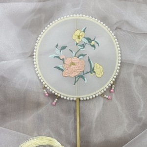 真珠手作り扇子、刺繍扇子、古風丸型扇子、民族風刺繍扇子、古典舞踊扇子