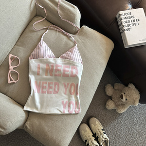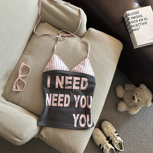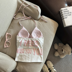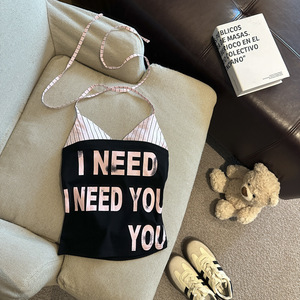 2025 新しいアメリカンホットガールプリントタイトな弾性チューブトップストライプホルターネックサスペンダーインナーツーピースセット女性用