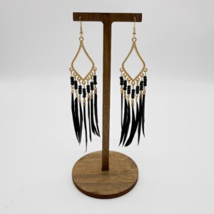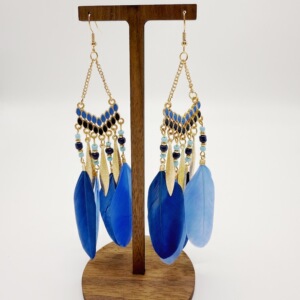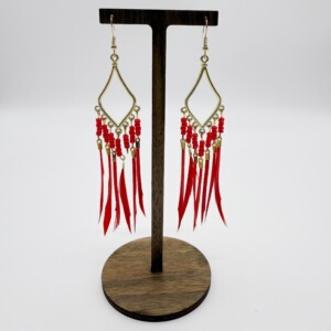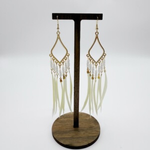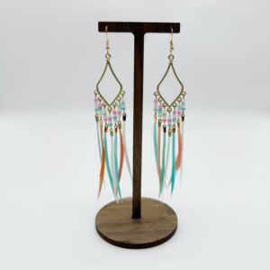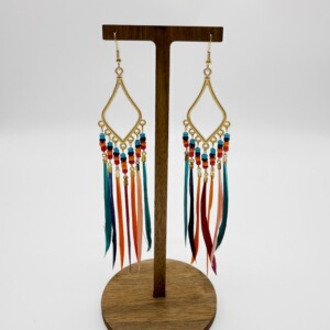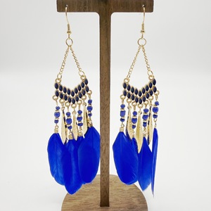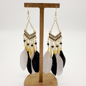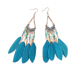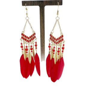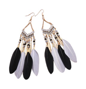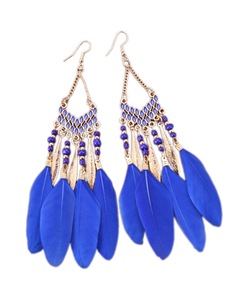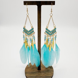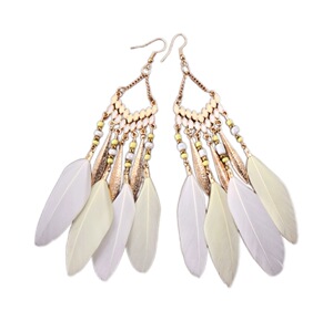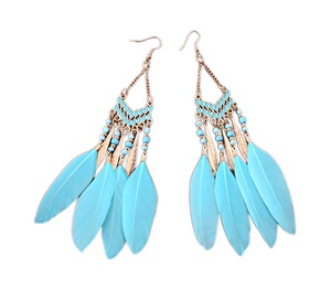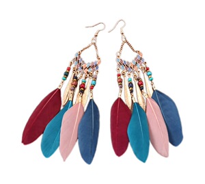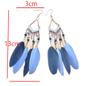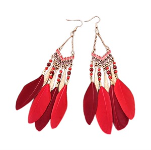 人気のV字型エスニック風フェザーイヤリング、ロングボヘミアンライスビーズヨーロッパとアメリカのイヤリング、ネットセレブの写真イヤリング