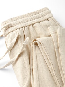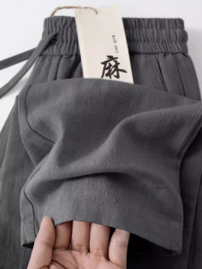 冷たくて気持ちいい!カーキ日本製リネンラミーストレートパンツメンズルーズドレープ通気性カジュアルパンツレディース夏