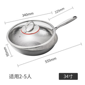 34cm 横耳付き打出しチタン中華鍋+蓋