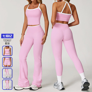 クロスボーダーヌードヨガスーツコントラストカラークロスバックタイトヨガスーツ女性ランニングスポーツフィットネススーツ 2027