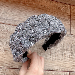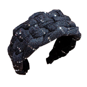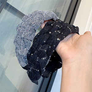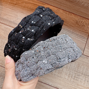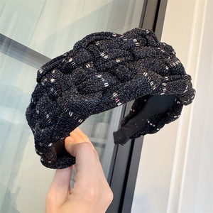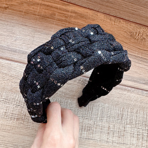 B121 黒のつば広編み込みヘッドバンド女性用新しいハイエンドツイストプレスヘアスパンコール高頭頂部ヘッドバンド