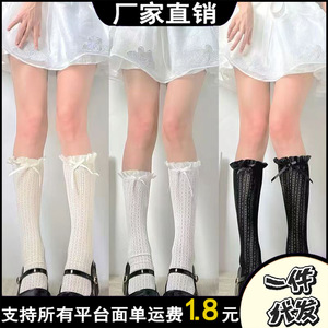 レースソックス、リボンソックス、女性用中空サマーミッドカーフソックス、バレエ風薄手白純情パイルソックス