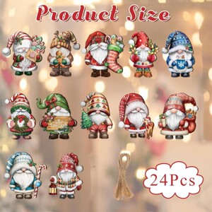 跨境24件复古圣诞小矮人木质悬挂装饰家居圣诞派对装饰节日派对用