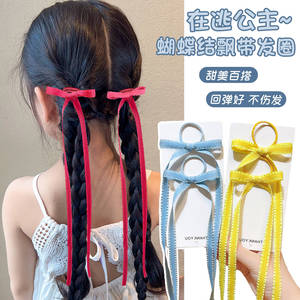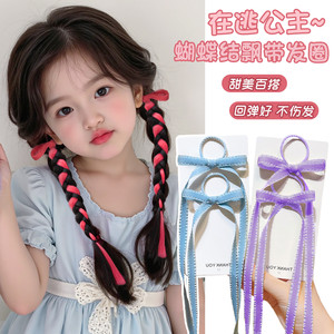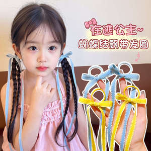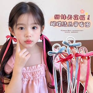 新款女童头绳儿童芭蕾丝带公主风蝴蝶结飘带扎马尾发饰编发头饰