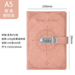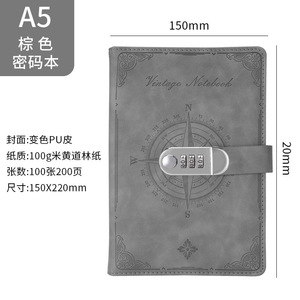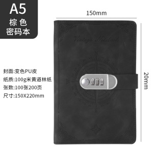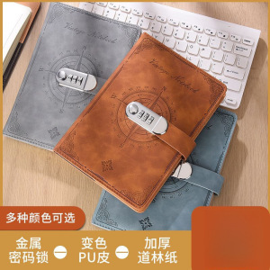 A5 レトロパスワードノートブックロック付き日記厚みのあるシンプルな学生メモ帳ハンドブック文具