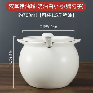 乳白色 (700ml) ラード缶、専用スプーン付き、高温耐性