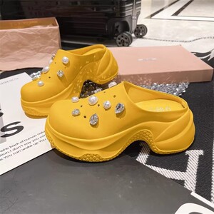 增高7cm~欧货水砖厚底包头半拖鞋女2025夏新百搭小众外穿钻凉拖