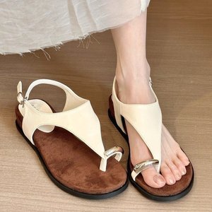 シープスキンバージョン~フレンチニッチメタルバックルスリッポンサンダル、フェアリースタイルオープントゥ本革ソフトソール快適ローマンシューズ