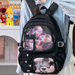 日本製透明バックパック女性用 2025 新しいスタイルシンプルな大容量バックパック軽量デイリーバックパック学生スクールバッグ