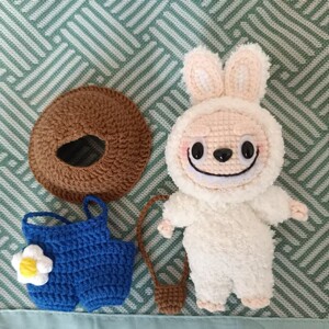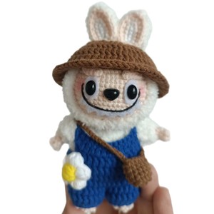 純粋に手作りの DIY かぎ針編みの第一世代と第二世代のラブブ編み人形キーホルダーかわいいスターのカップル同じスタイル