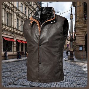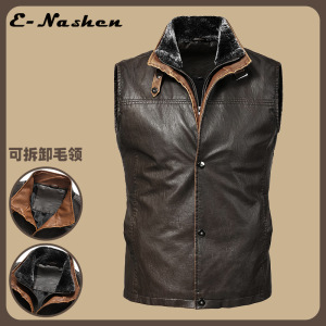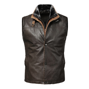 跨境热销男式皮衣初秋PU马甲欧美大码休闲复古男外套潮牌工装背心