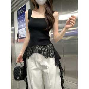 Pure Desire Hot Girl レースステッチ裾キャミソール女性の夏の不規則なリボンインナーとアウターウェアスリムフィットトップ