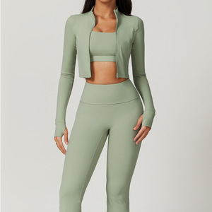 アウトドアクラウドセンススポーツヨガウェアセットタイトヌードフィットネスウェア耐衝撃ハイウエストヨガウェア3点セット8047