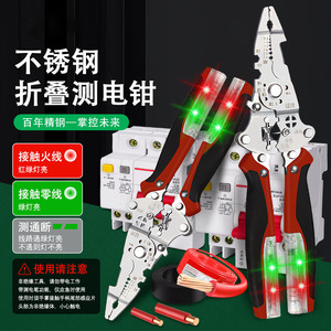 新しい電気技師用電気テストペン付き多機能ワイヤーストリッパー、折りたたみ式16-in-1ケーブルカッターワイヤーストリッパー