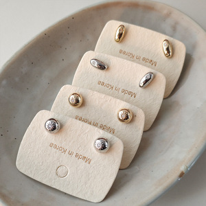 ゴールデンラウンドビーンスタッドピアス-925シルバー針/本金メッキ