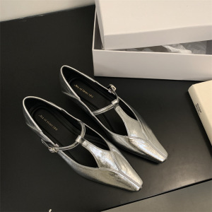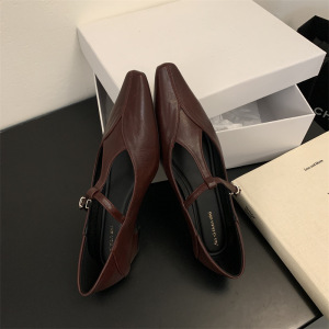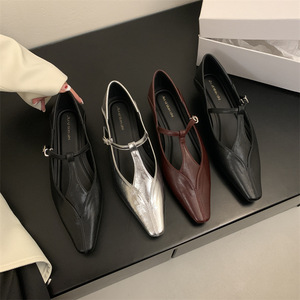 女性用シングルシューズ 2025 春夏新作イブニングシューズ気質スクエアトゥ浅いローヒール太いヒール婦人靴フレンチメリージェーンシューズ