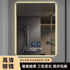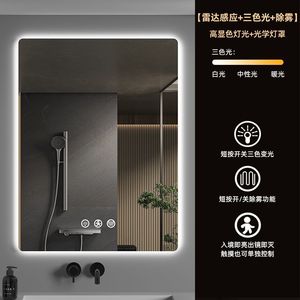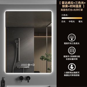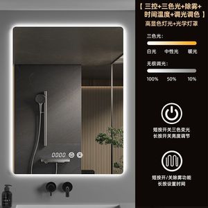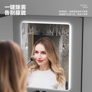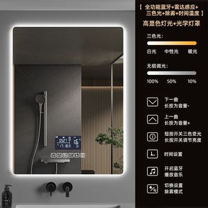スマートバスルームミラー化粧鏡バスルーム壁掛け防曇バスルームミラーBluetooth無段階調光フレンチミラーライト付き