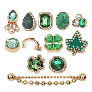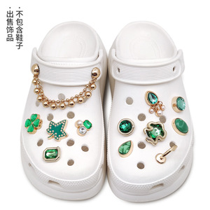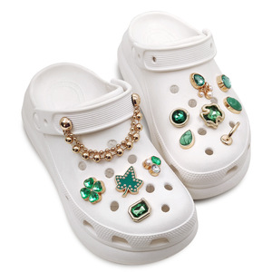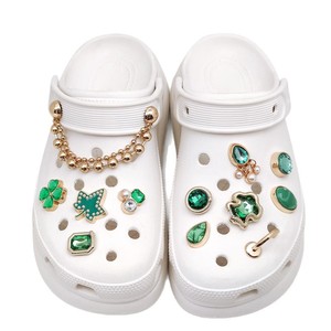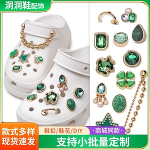 新しいクロス下駄アクセサリー靴装飾バックル DIY 取り外し可能な金属の質感の緑の宝石の靴のバックル