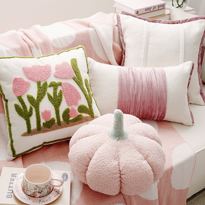 粉色小清新田园风抱枕套粉色法式奶油风客厅沙发床头飘窗靠枕靠垫