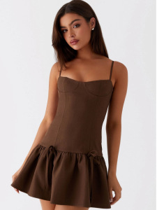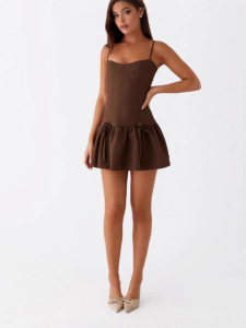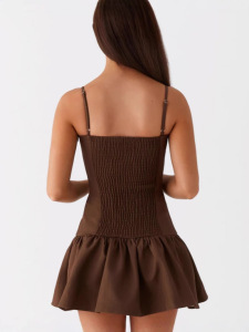 クロスボーダートレンドコーヒーカラーのセクシーなホットガールスタイルのスリムバレエプリンセスドレスバック弾性リボンサスペンダードレス