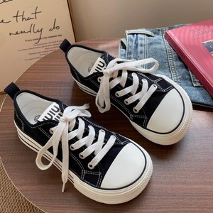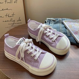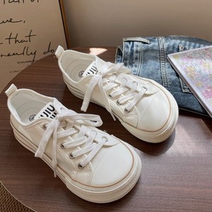 2025 春と夏の新通気性厚底マンゴーヘッドキャンバスシューズ女性の韓国のファッショントレンド白靴ニッチスニーカー