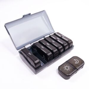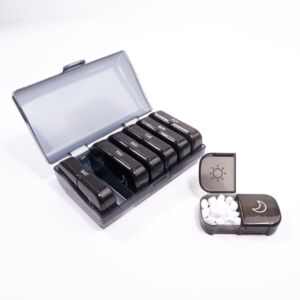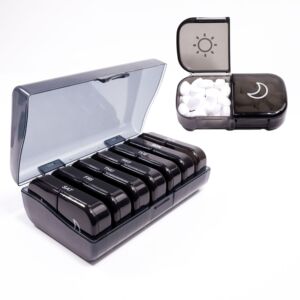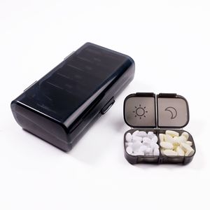 Amazonの人気のピルボックス、遮光プラスチックブラックグリッド、1週間7日、14グリッド、旅行用ポータブル大容量収納ボックス