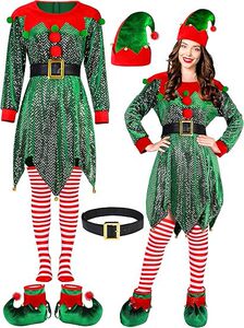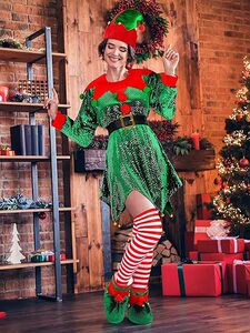 クロスボーダークリスマスレディースエルフコスプレ衣装セットベルベットドレススパンコールステージパフォーマンス用