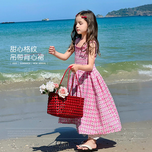 Tutu ゾウ子供服女の子サマードレス 2025 新しい子供サスペンダースカート女の子チェック柄ベストドレス女性