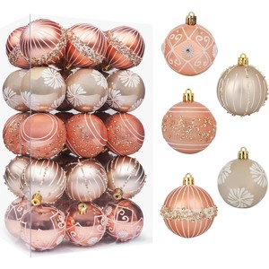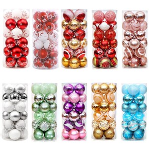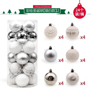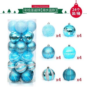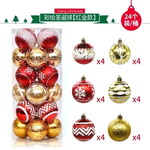 圣诞节装饰品6cm24pcsPVC桶装彩绘圣诞球套装 圣诞树挂装饰用品