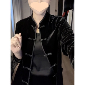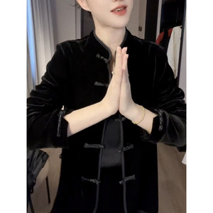 高級中国風ベルベットジャケット新しいレトロ黒春と秋の新しいカジュアルスリム唐スーツカーディガン大きいサイズ