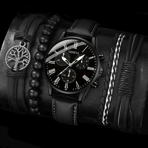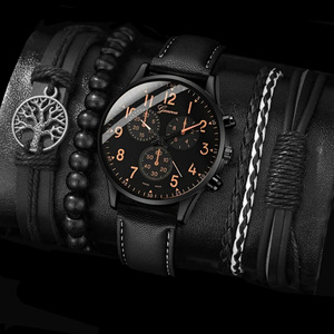2025 クロスボーダー新カジュアルパーソナライズメンズ偽二重目カレンダービジネスクォーツ時計 8 フレットベルトブレスレットセット