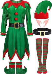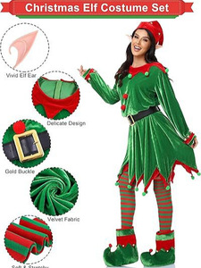 2025年 クロスボーダー レディース クリスマスエルフコスチュームセット ベルベットドレス コスプレ衣装 ステージパフォーマンス