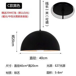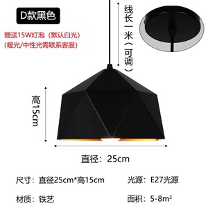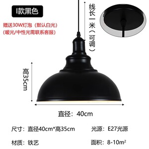 餐饮店吊灯店铺商用复古美式餐桌简约餐厅工业风灯罩工业风吊灯