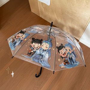 森の花と草の手動透明傘 - 厚みのあるバージョン