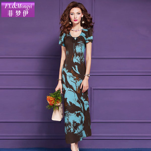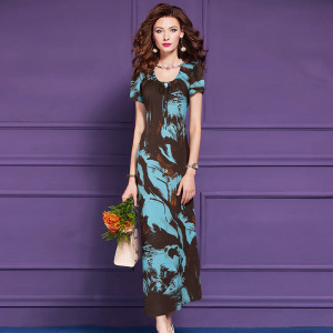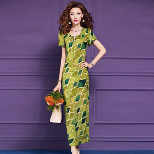 Feimengyi プリントドレスレディース半袖夏フレンチハイエンドライト大人ファッションスリムレディ気質ロングスカート