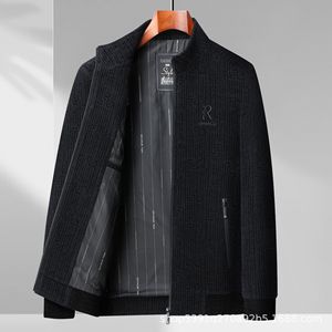 お父さんお父さん春秋薄手ジャケット中高年紳士服ゆったりメンズカジュアルスタンドカラージャケットシェニール