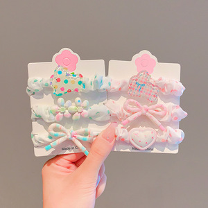 子供の漫画の花のヘアローププリント小腸ヘアリング新しいかわいいクリーム色のヘアロープ甘い小さな新鮮なヘアアクセサリー