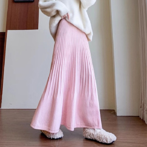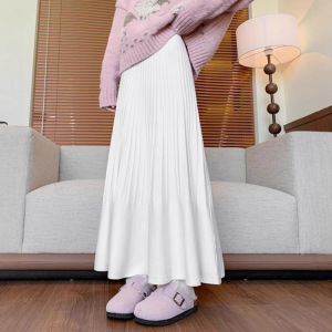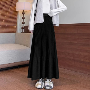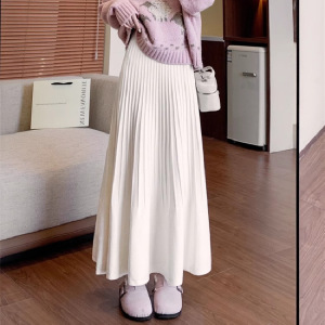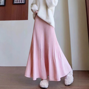 女性用ニットプリーツスカート2025秋冬新作ドレープハイウエストスリムロングスカート大きな裾Aラインアンブレラスカート